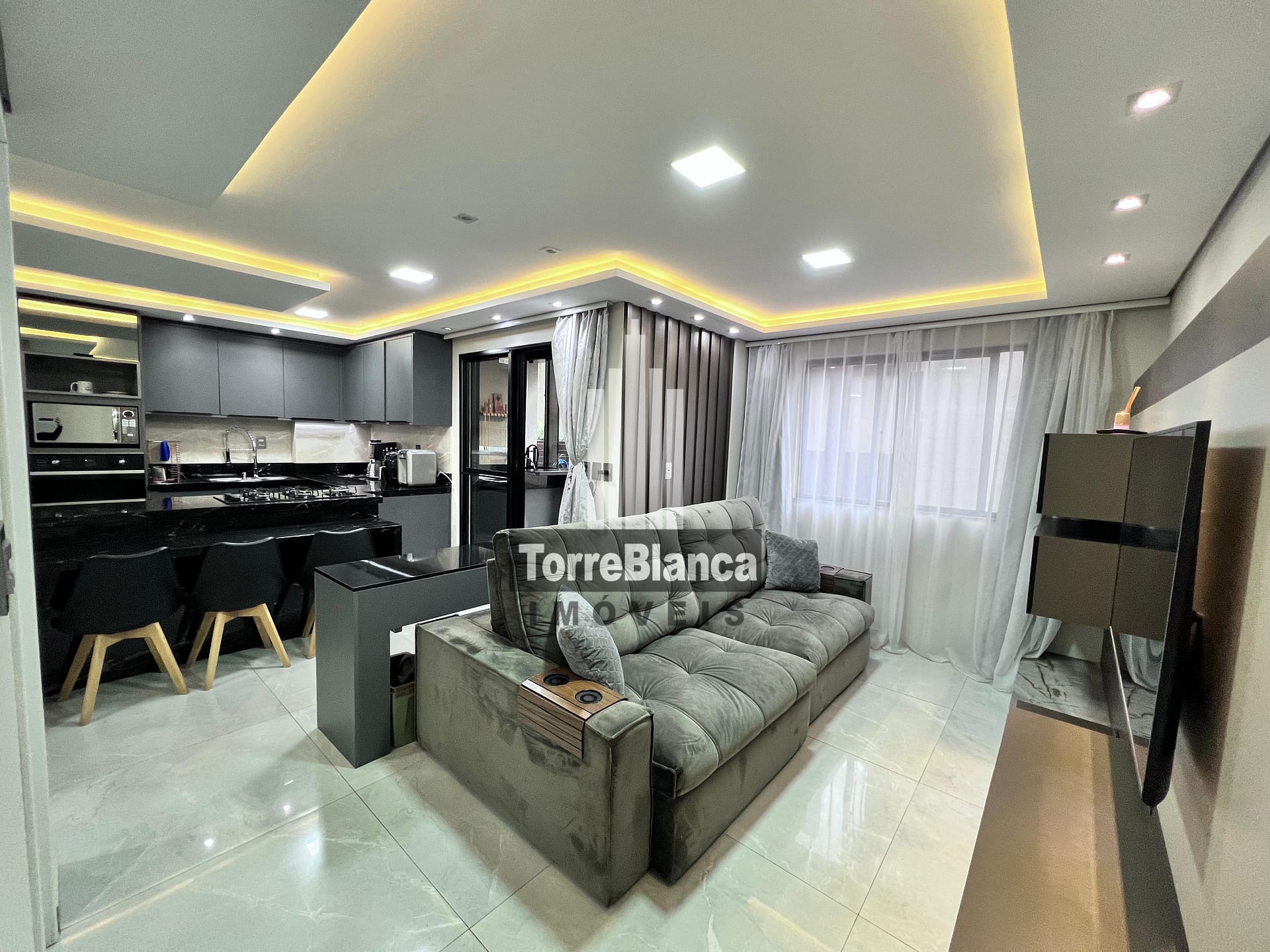 Apartamento semi mobiliado no Residencial Vista Oficinas contendo sala para 2 ambientes integrada com cozinha,1 suíte, banheiro social, área de serviço e garagem.