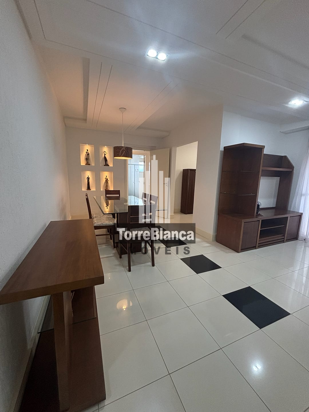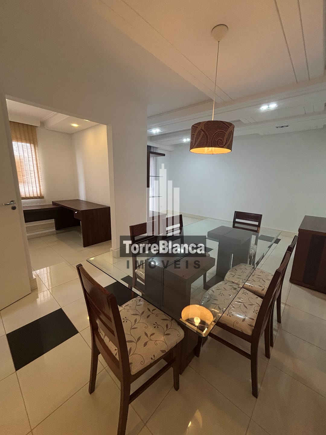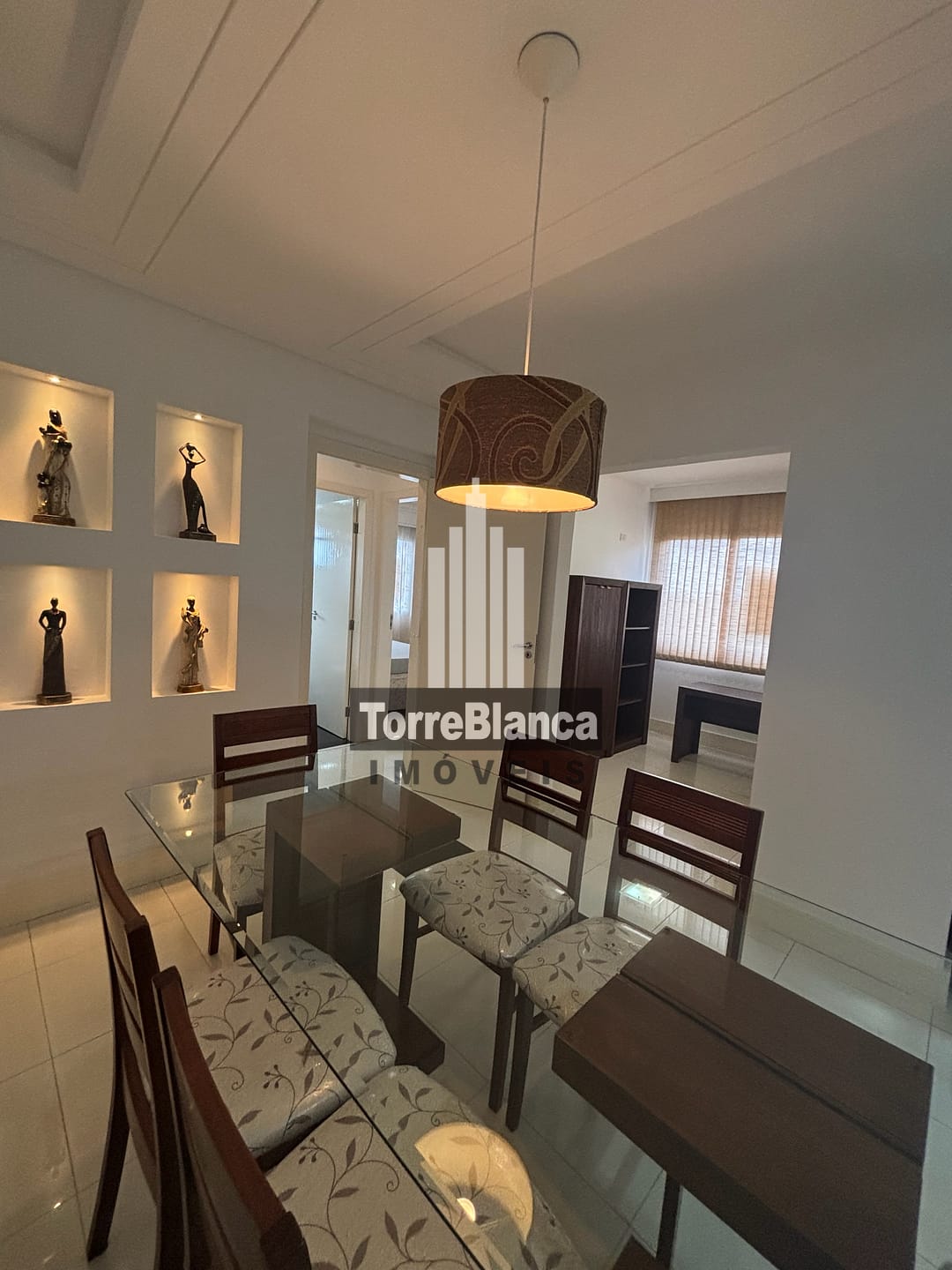 🔸 Sala de jantar: aparador, mesa com tampo em vidro, para 6 lugares;