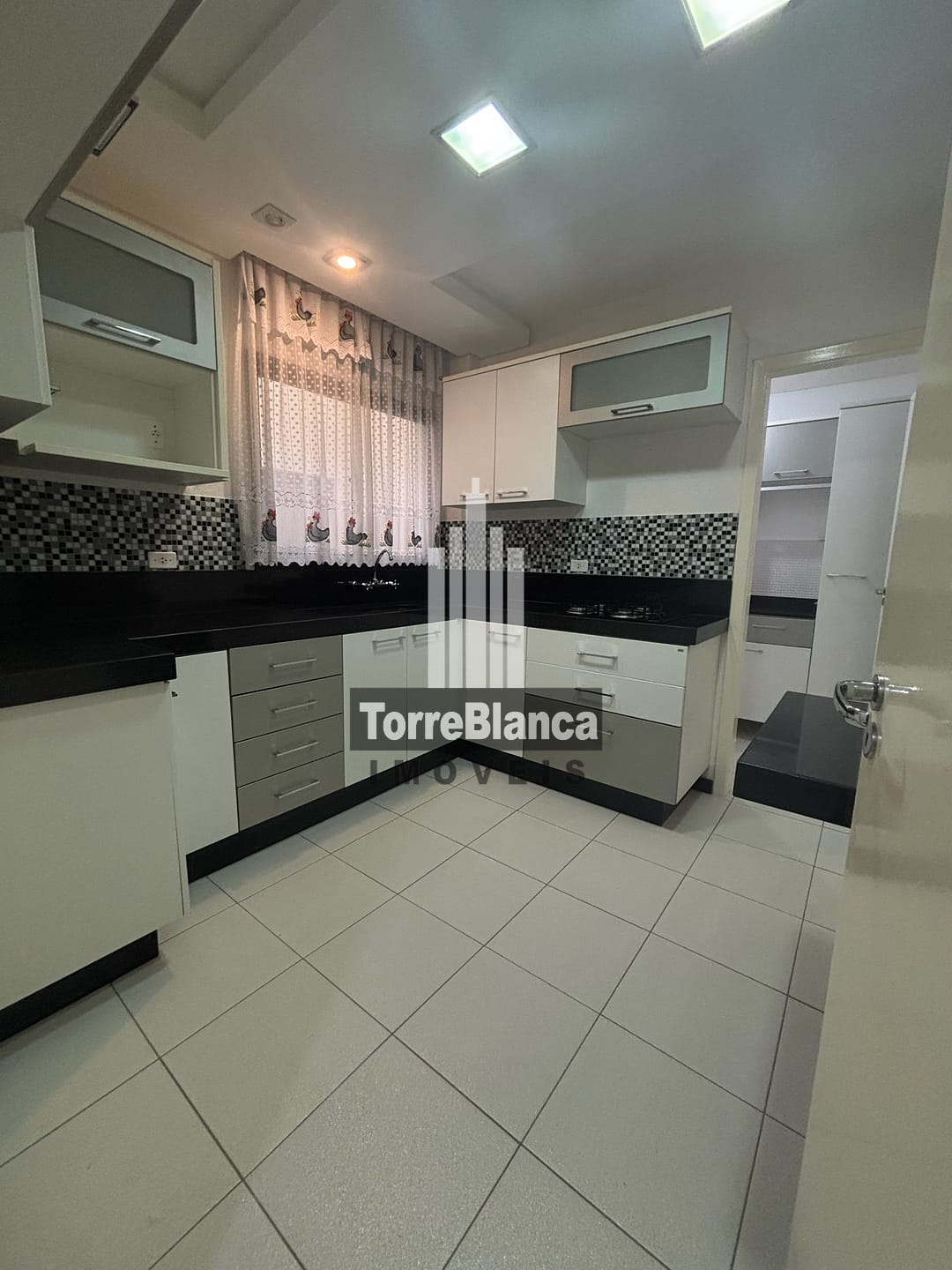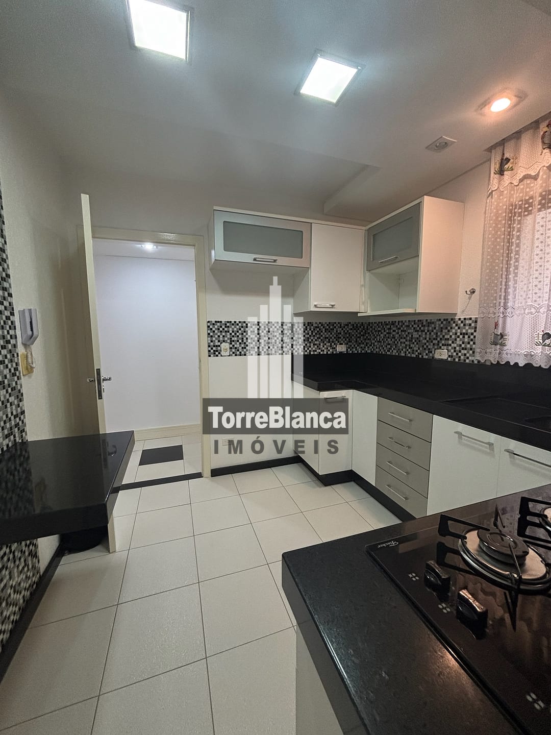 🔸 Cozinha: armários, com fogão cooktop de 4 bocas, e mesa para dois lugares;