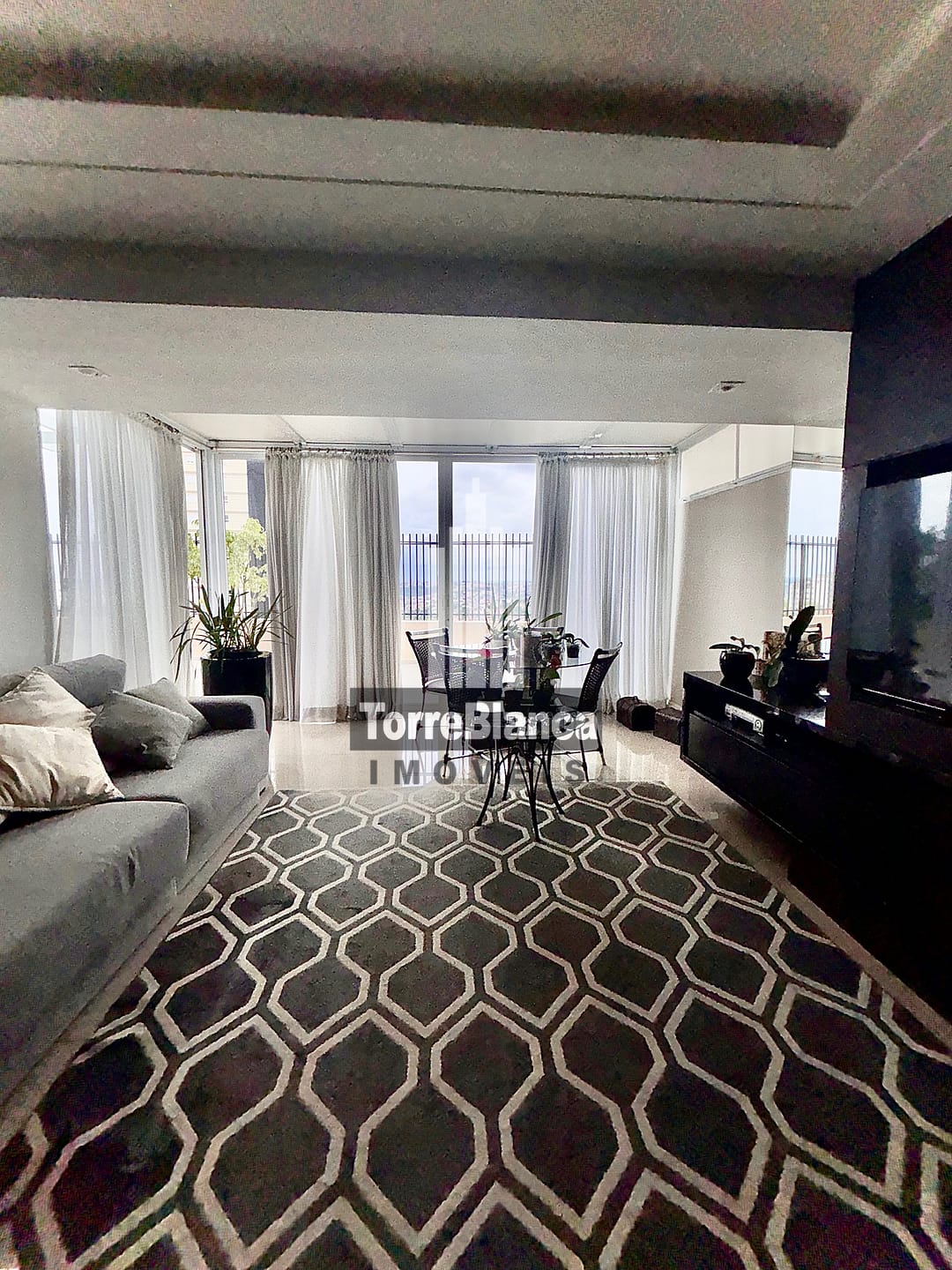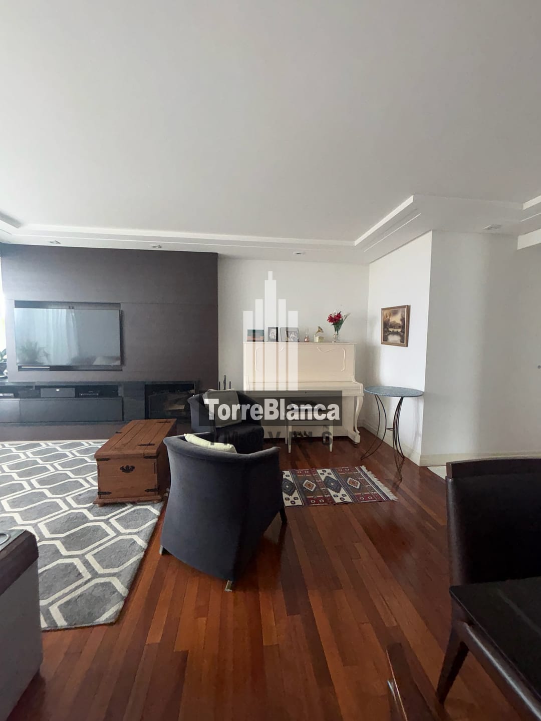 🔸Sala ampla com copa, painel de tv com Lareira embutida.