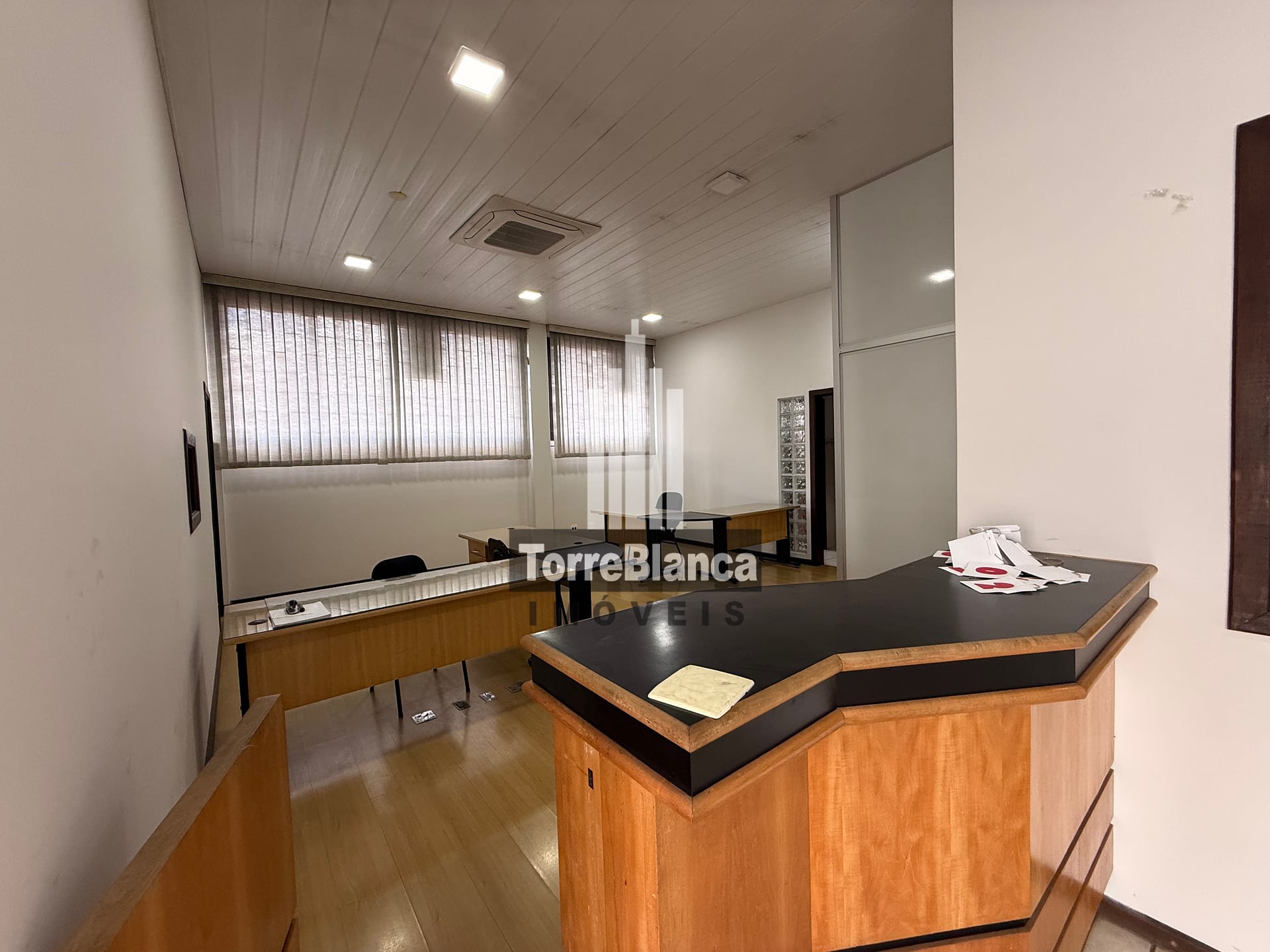 ✨ Distribuído em ampla recepção com balcão e mobília de escritório, depósito de arquivo, cozinha, BWC e 07 salas integradas à recepção, sendo 02 salas maiores com banheiro privativo.